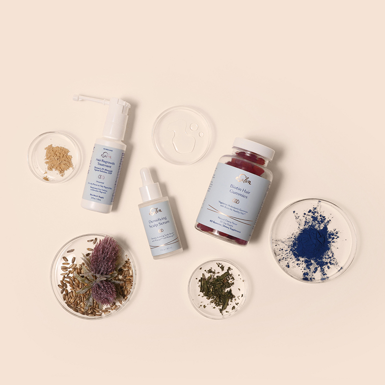 Resultados obtenidos utilizando múltiples productos eSalon para el crecimiento del cabello, incluido nuestro Scalp Calming Shampoo.