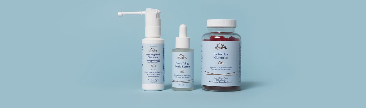 With eSalon’s custom hair growth support, our experts can recommend a multi-faceted routine to address your specific type of hair loss from all angles while seamlessly fitting into your life.